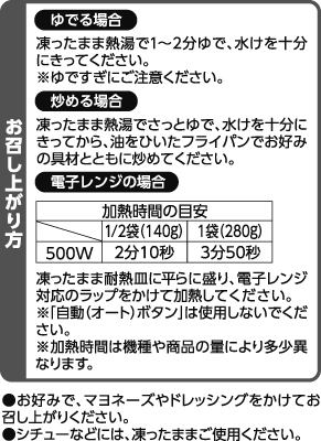 クリームシチューに1番最後にいれて ひと煮立ちぐらいでいただきました。 パッケージの写真にくらべたらわりとしっかりめに花の付け根茎?の部分もあるように感じます。 お手軽で美味しかったです!