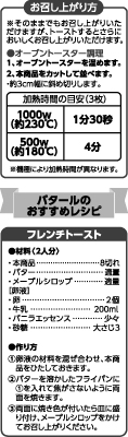 - 酢酸Na、乳化剤、イーストフード、ビタミンC、グリシン、酵素、(一部に卵・乳成分・小麦・大豆を含む)