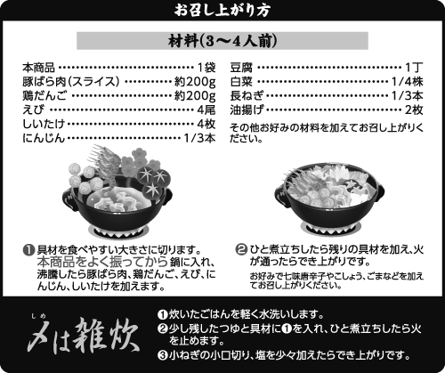 - 調味料(アミノ酸等)、pH調整剤、乳化剤