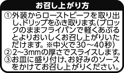 - 牛肉(オーストラリア産)、食塩、香辛料、砂糖、粉末しょうゆ(大豆・小麦を含む)、ばれいしょでん粉、コーングリッツ、乾燥エリンギ、フライドガーリック粉末、デキストリン、オニオン加工品、食用油脂