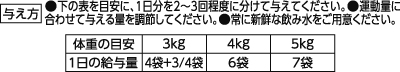 - 1袋(60g)当たり たんぱく質5.0%以上 脂質1.5%以上 粗繊維1.0%以下 灰分2.0%以下 水分88.0%以下 エネルギー35kcal【灰分主成分】リン0.05%以上 カリウム0.06%以上 マグネシウム(標準値)0.007%