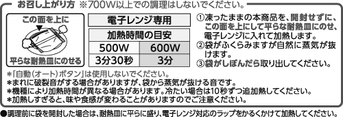 - 米(国産)、トマトケチャップ、鶏肉(国産)、大麦(国産)、野菜(玉ねぎ、いんげん)、なたね油、鶏皮(国産)、砂糖、しょうゆ(大豆・小麦を含む)、食塩、食酢、チキンエキス調味料、おろしにんにく、すりしょうが