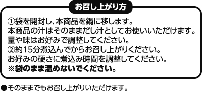 - 大根、しょうゆ(大豆・小麦を含む)、食塩、かつおエキス(大豆を含む)、昆布エキス、大豆たん白加水分解物