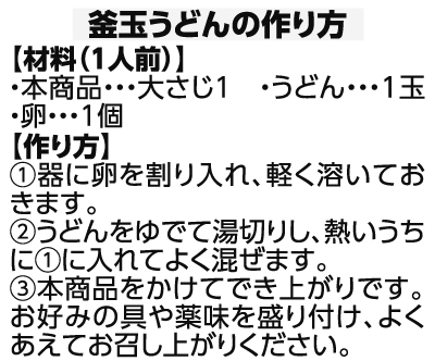 - しょうゆ(大豆・小麦を含む)(国内製造)、水あめ、砂糖、食塩、ぶどう糖果糖液糖、焼きあごだし、昆布エキス