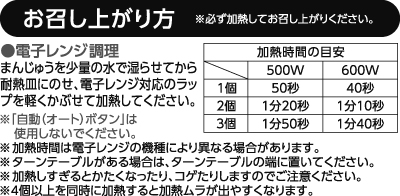 - 小麦粉(国内製造)、玉ねぎ、砂糖、たけのこ、粒状大豆たん白、しょうゆ(小麦・大豆を含む)、ラード、パン粉(小麦・大豆を含む)、豚肉、豚脂、ばれいしょでん粉、イースト、オイスターソース、清酒、食塩、ごま油、甜麺醤(大豆・小麦・ごまを含む)、しょうがペースト、しいたけ、白きくらげ抽出物、にんにくペースト、チキンブイヨン(乳成分・小麦・大豆を含む)、黒こしょう、麦麹粉末(小麦を含む)