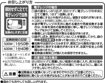 - 1袋(180g)当たり エネルギー113kcal たんぱく質4.3g 脂質2.3g 炭水化物19.8g(糖質17.6g 食物繊維2.2g)食塩相当量1.5g この表示値は、目安です。