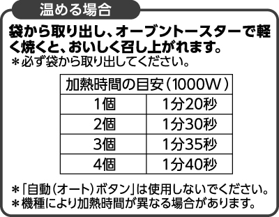 - 1個(73g)当たり エネルギー208kcal たんぱく質5.3g 脂質4.6g 飽和脂肪酸1.47g トランス脂肪酸0g コレステロール0mg 炭水化物37.2g 糖質35.6g 食物繊維1.6g 食塩相当量0.6g この表示値は、目安です。※1個は約73gです。