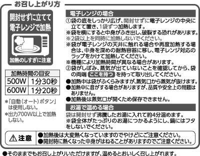 - ●「卵、乳、小麦、えび、大豆、鶏肉」の成分を含んだ原材料を使用しています。●同じ生産工程で「あわび、いか、いくら、オレンジ、牛肉、ごま、さけ、さば、豚肉、もも、りんご、ゼラチン、魚介類」を含んだ食品を扱っています。