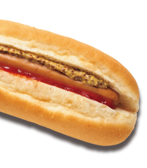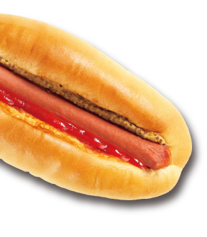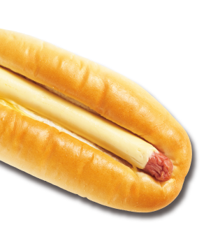 あらびきウインナーに粒マスタードがアクセントのホットドッグです。