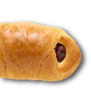 ふんわり生地にウインナーをのせからしマヨソースをかけました。
