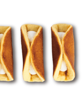 ふんわり食感の生地にコクのある味わいのミルクホイップクリームを使用しました。
