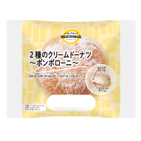 ふわふわのドーナツにホイップクリームとカスタードクリームを入れました。