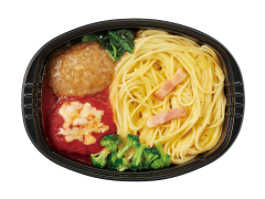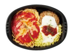 和風と洋風ソースのハンバーグ2個にパスタを合わせた満足のワントレー。