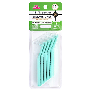 ・ キャップ付き 奥歯の汚れも除去しやすいL字型歯間ブラシS【4549414624205】