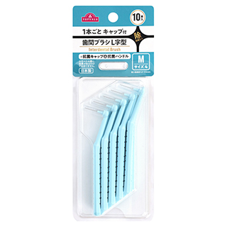 ・ キャップ付き 奥歯の汚れも除去しやすいL字型歯間ブラシM【4549414624212】